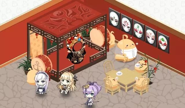 不止如此,于2月13日一并上线的还有川剧联动主题后宅家具。在这套家具中,除了脸谱、川剧行头、戏台、锣鼓等大众熟知的戏曲元素外,还能看到《碧蓝航线》的吉祥物“蛮啾”悠然自得地围坐在竹桌前端茶品茗,大摆龙门阵,茶博士则持壶静候一旁。如此,一幅观众午后闲来无事、喝茶看戏的景象便跃然于屏幕之上。