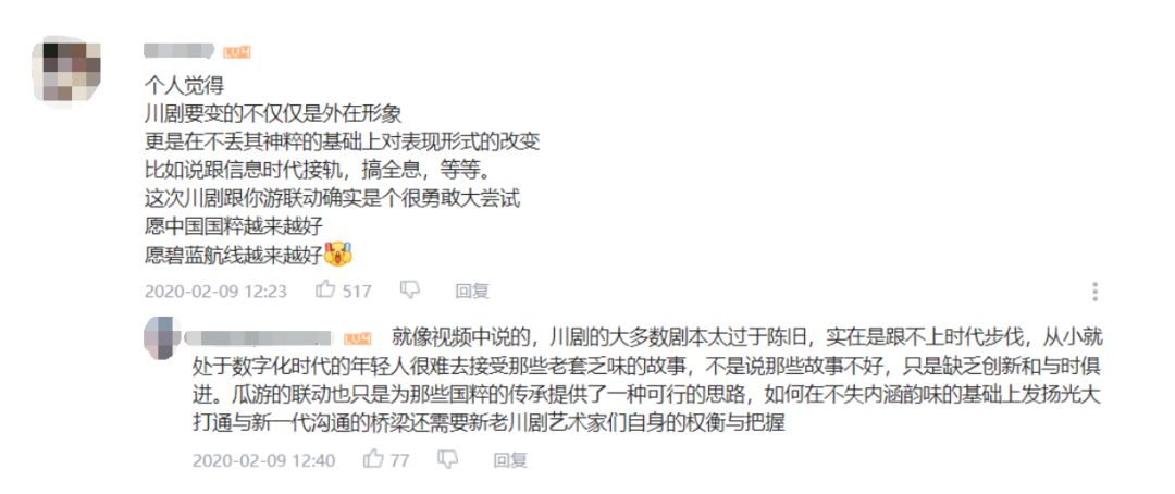从川剧的由来、演变,到变脸特技表演,从艺术家们对着镜头吐露他们对川剧未来发展的担忧,到本次联动的初衷,《碧蓝航线》的玩家及B站观众在12分钟里仿佛穿过了一条千年文化古道,他们看待这次联动的态度也由最初的惊奇诧异,转变为对川剧艺术的致敬和期待。