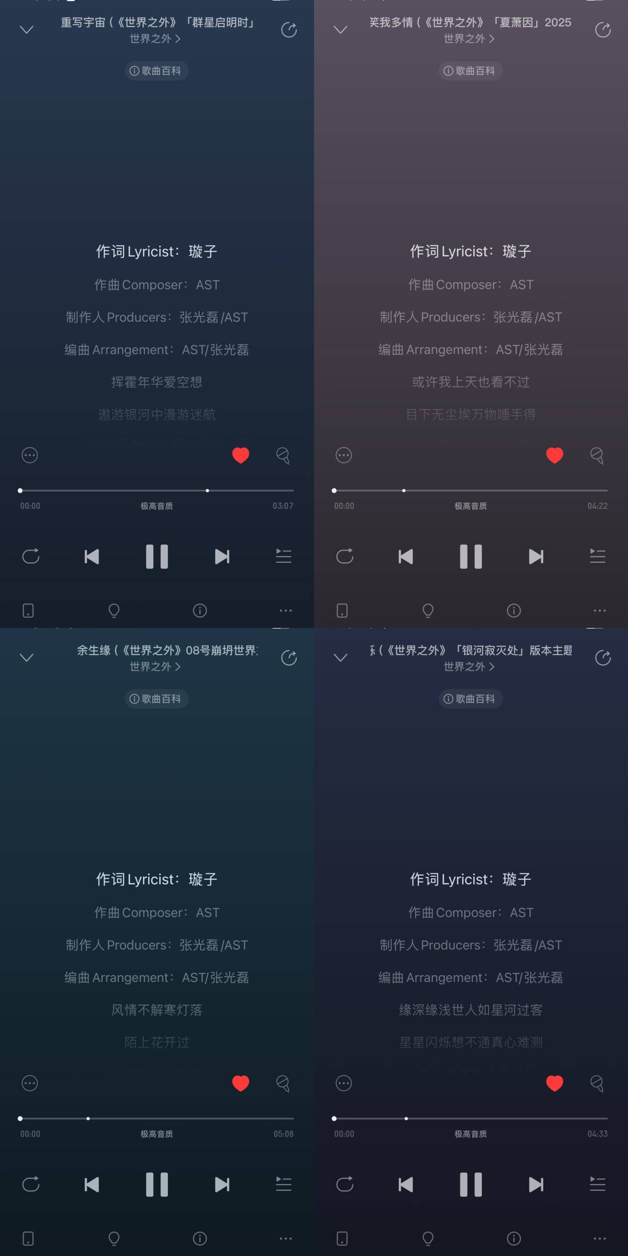 除担任主职制作人外,璇子还亲自参与了《世界之外》主题曲的作词工作。