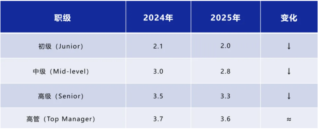调查显示,2025年游戏从业者对薪资的满意度全面下降。从1到5分的自评体系中,初级与中级岗位的降幅最为显著。他们不仅是薪资冻结、奖金缩水的直接受害者,更是晋升通道被堵死的“沉默大多数”。