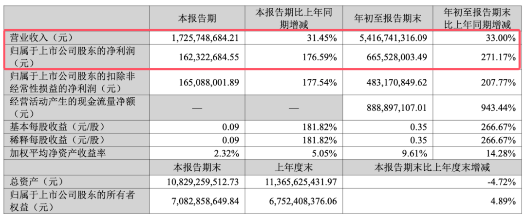 除了营收TOP3外,今年第三季度部分公司也凭借稳健运营与战略调整,实现业绩的显著增长。