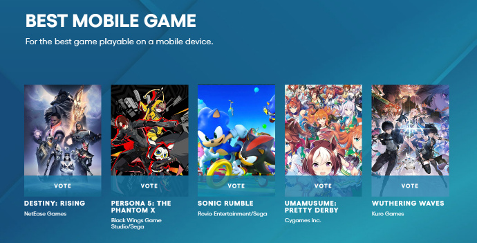 此外,也有网易研发的《命运:崛起》和完美世界《女神异闻录5:幻影X》这样的海外IP合作项目亮相,共同角逐最佳手游。
