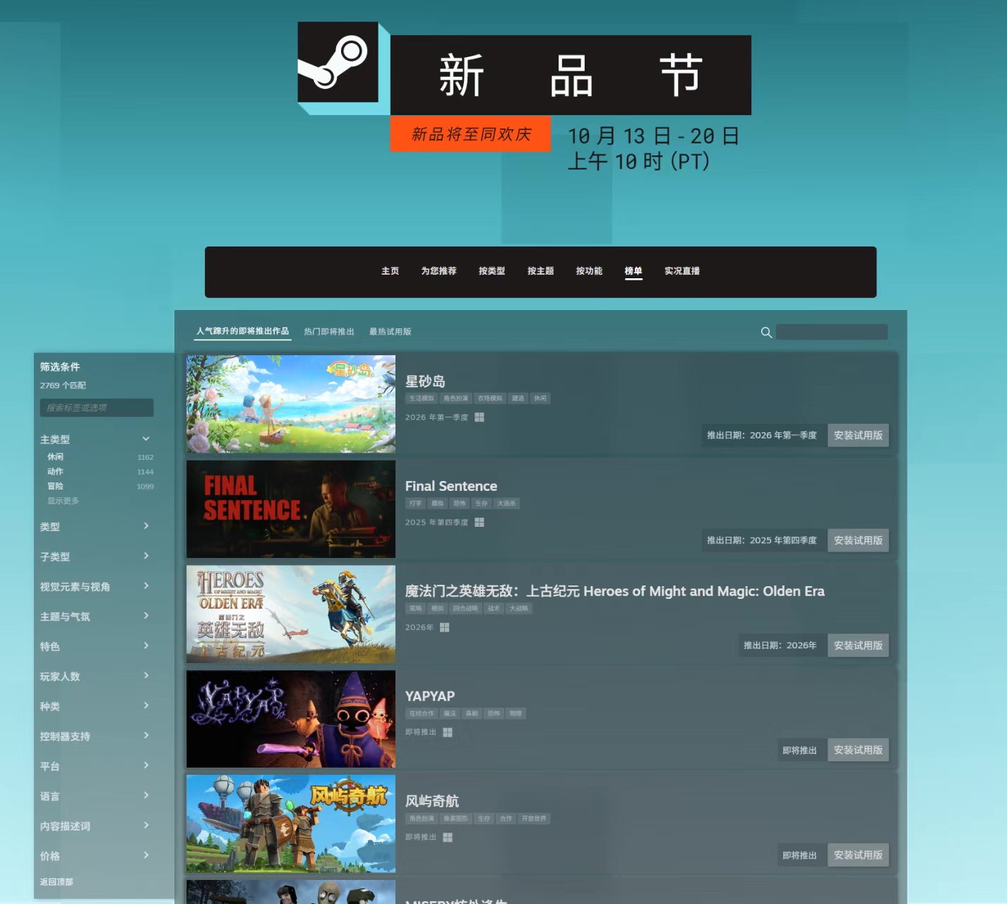 此外,金山软件及西山居投资的独游团队Seed Lab制作的《星砂岛》也在Steam秋季新品节中表现亮眼,位列新品Demo榜单TOP20,新品节期间霸榜了人气榜两天。游戏将于2026年2月发售,确认登陆PS5/Xbox/PC平台。