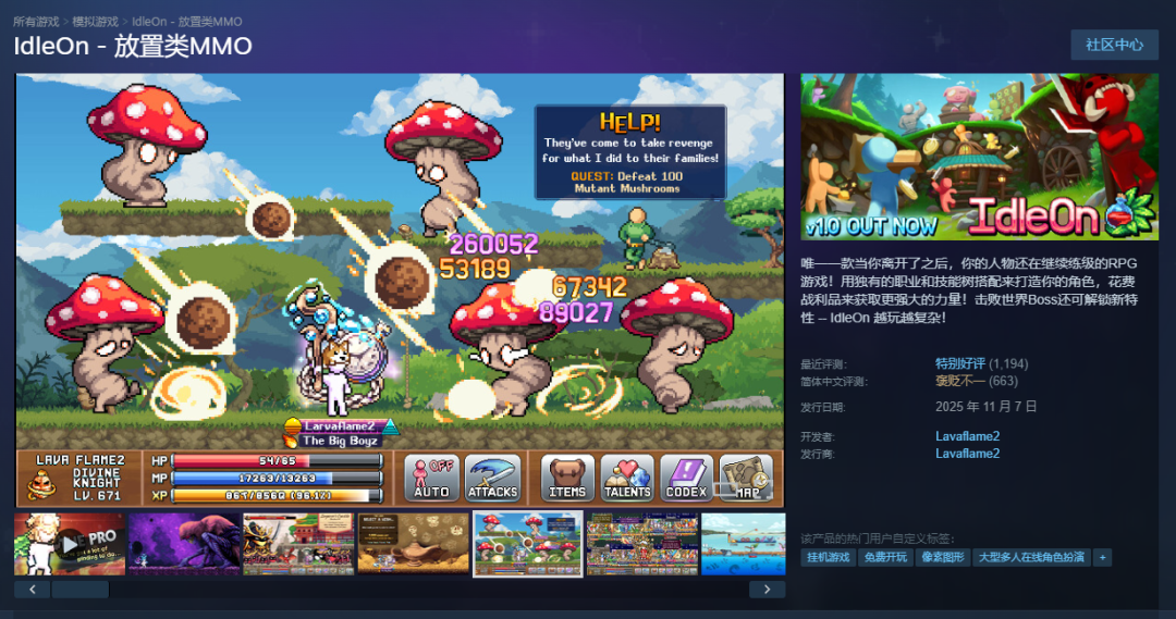 而像《IdleOn - 放置类MMO》这种糅合了轻度放置和角色成长的长线运营产品,更是混得风生水起——老实说,你觉得挂机MMO手游做得飞起的国内厂商,来Steam做一款类似的产品打不过这款像素风MMO吗?非不能也,实不为也。