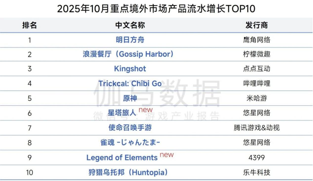 此外,《无尽冬日》凭借双节活动收入环比增长超1亿元,排名上升3位,展现出节庆运营对收入的显著拉动作用。