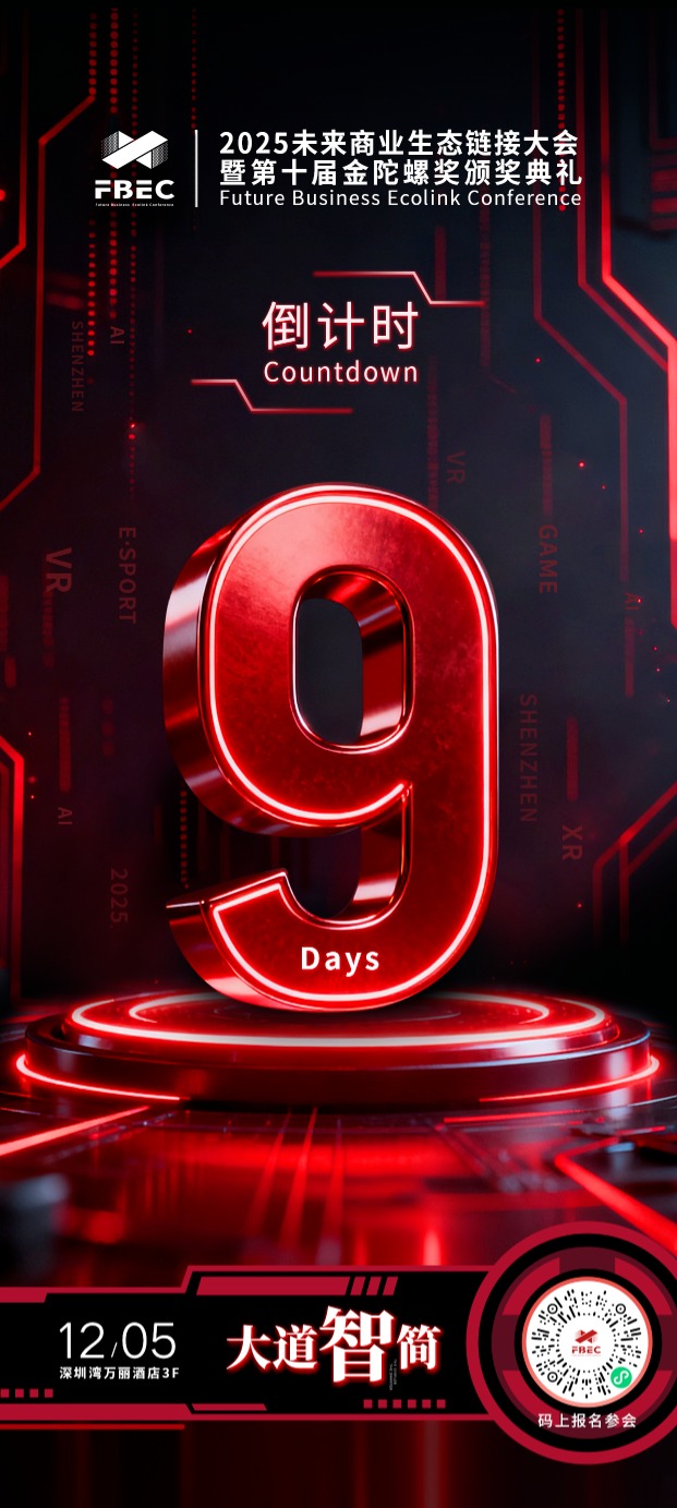 2025未来商业生态链接大会暨第十届金陀螺奖颁奖典礼(以下简称“FBEC2025”) 将于2025年12月5日在深圳湾万丽酒店盛大召开。本次大会由广东省游戏产业协会、深圳市互联网文化市场协会共同指导,陀螺科技主办,游戏陀螺、VR陀螺、陀螺财经、陀螺电竞、前方智能联合主办。大会以“大道智简”为核心主题,聚焦游戏、XR、AI、电竞等前沿领域及行业热点议题,探讨新科技、新商业、新模式的未来价值共同探索技术本质,把握变革先机,让我们与所有探索者执简驭繁,共赴星海,破晓而行!