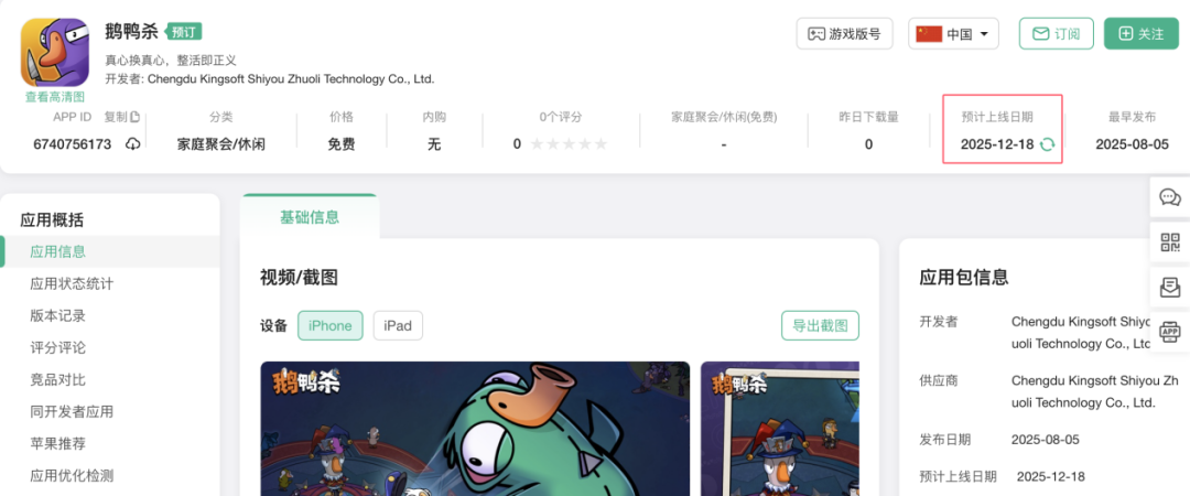 金山世游与虎牙联手打造的动物狼人杀派对游戏《鸭鹅杀》历经多时预热,预计将在12月正式亮相。今年夏季金山世游曾透露该游戏国服移动版将于秋季上市,根据App Store页面显示,其上线日期预计为12月18日。