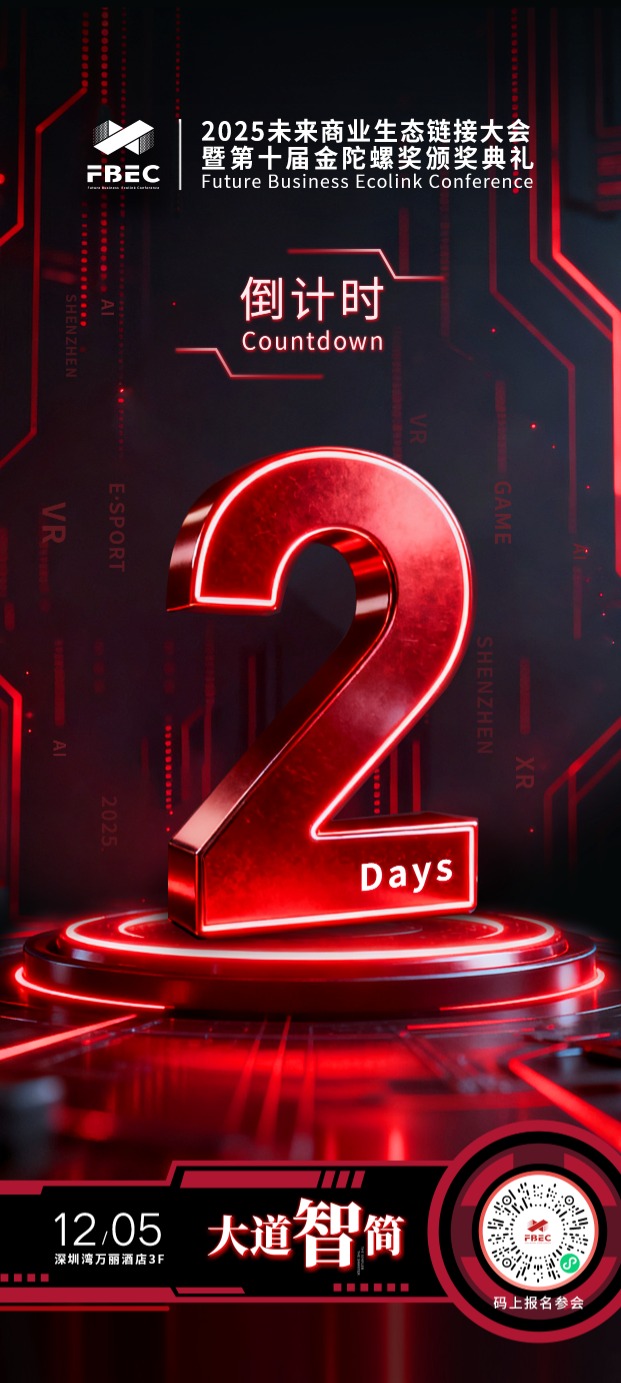 2025未来商业生态链接大会暨第十届金陀螺奖颁奖典礼(以下简称“FBEC2025”) 将于2025年12月5日在深圳湾万丽酒店盛大召开。本次大会由广东省游戏产业协会、深圳市互联网文化市场协会共同指导,陀螺科技主办,游戏陀螺、VR陀螺、陀螺财经、陀螺电竞、前方智能联合主办。大会以“大道智简”为核心主题,聚焦游戏、XR、AI、电竞等前沿领域及行业热点议题,探讨新科技、新商业、新模式的未来价值共同探索技术本质,把握变革先机,让我们与所有探索者执简驭繁,共赴星海,破晓而行!