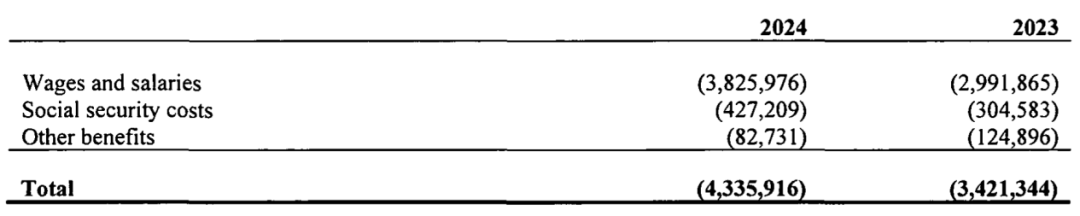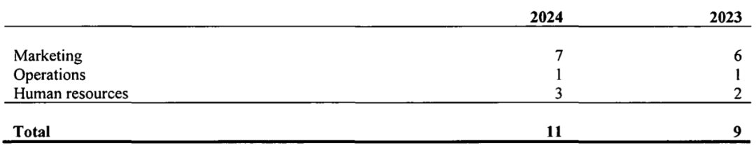 此外,报告显示,11名员工(不含董事)的总人力成本高达433.6万美元,人均成本接近每年40万美元。这符合伦敦高端营销和运营人才的薪资水平,也印证了团队成员的资深程度。