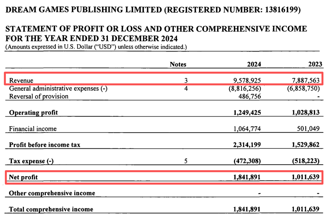 当游戏业界仍在津津乐道于土耳其游戏公司Dream Games凭借《Royal Match》《Royal Kingdom》创造的奇迹时,其设在英国伦敦的关键枢纽——Dream Games Publishing Limited(以下简称“英国分部”),近期向英国公司注册署(Companies House)提交了截至2024年12月31日的完整财年报告。
