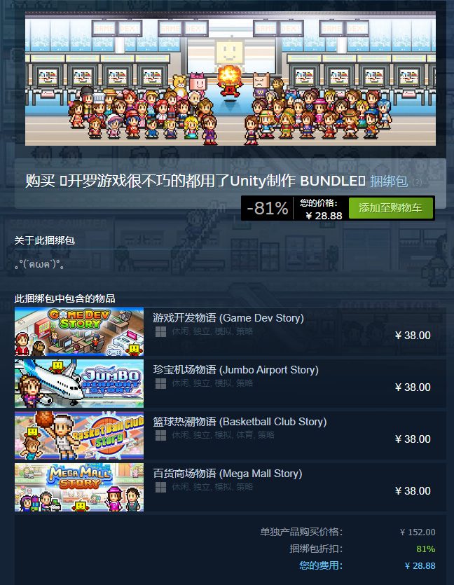 此前Unity曾推出收取下载费新政,开罗推出(哭泣)游戏捆绑包