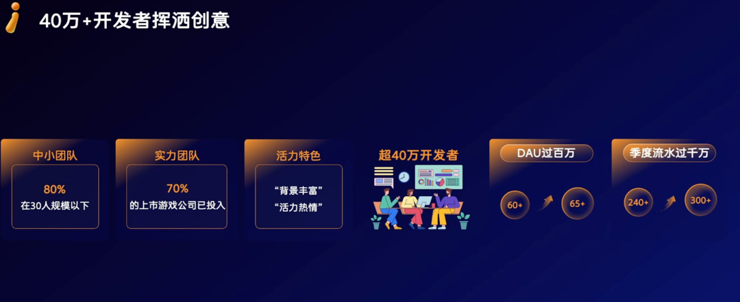 在这种大盘环境下,入局者的画像也随之改变。中小团队超8成都是在30人以下,但更多大厂也在逐步加入,目前有70%的上市游戏公司都已下场,推动小游戏向更高的品质升级。
