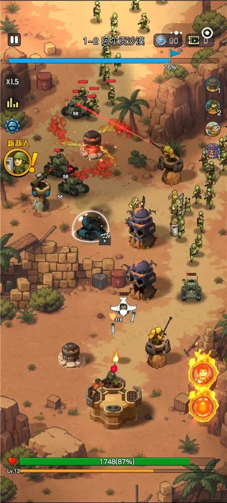 还有,PLAY800发行的《合金战线》则走了一条不同的IAA变现路径,尝试将合金弹头IP与肉鸽、塔防结合,通过引入经济系统来控制强化项的获取节奏。