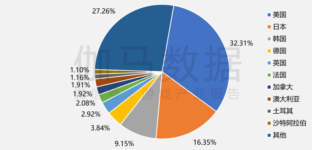 在海外区域分布上,美、日、韩仍是主要市场,合计占比57.81%,德、英、法合计占8.84%。整体来看,我国游戏出海格局保持稳定,成熟市场与新兴市场并进。