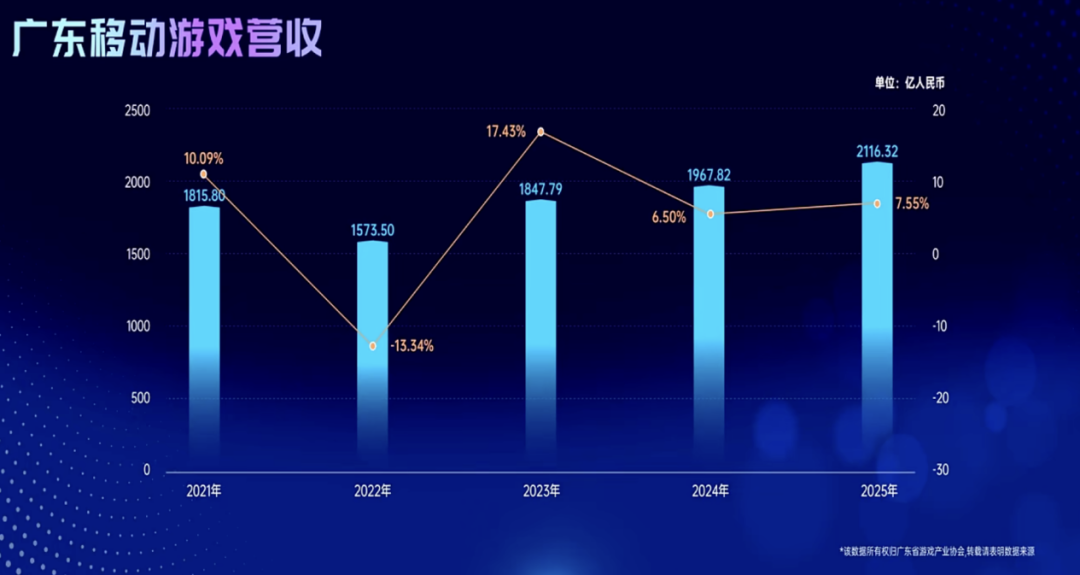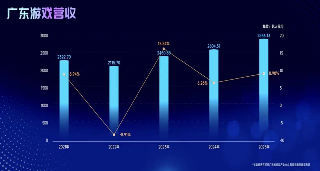 聚焦到广东省,报告显示,2025年广东省游戏产业营收规模预计为2836.13亿元,同比增长8.9%。增速较上一年小幅提升,但更为关键的变化藏在结构里。
