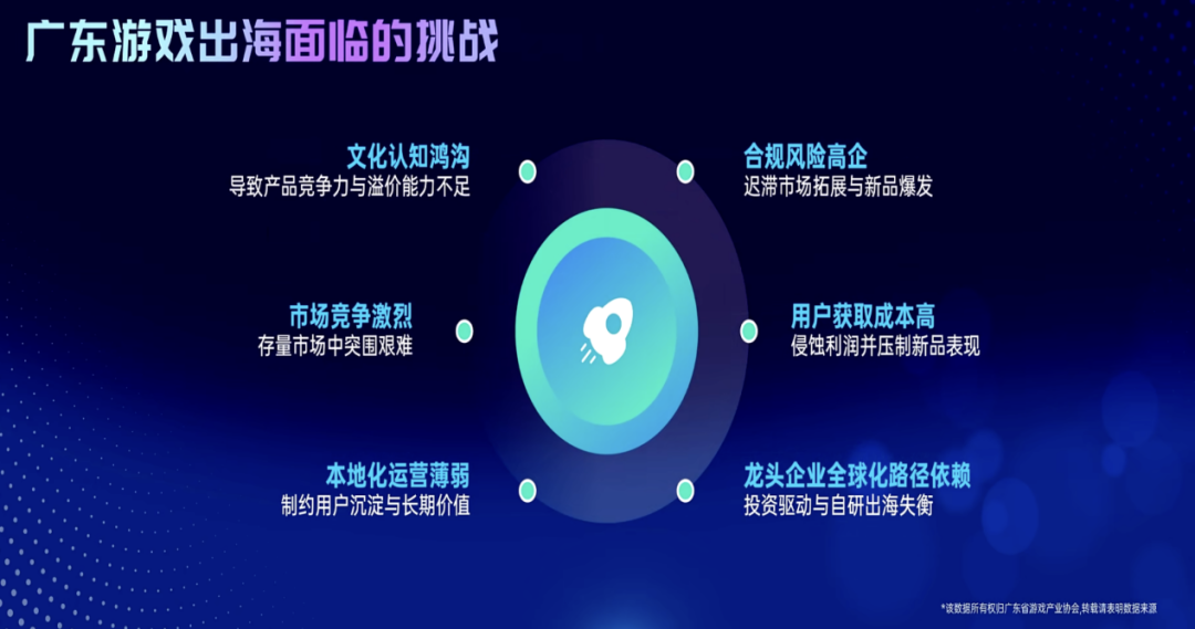 同时报告也指出,广东游戏出海仍面临多重挑战,主要包括:文化认知差异、合规风险上升、市场竞争加剧、用户获取成本高企、本地化运营能力不足,以及部分龙头企业对原有全球化路径的依赖等。