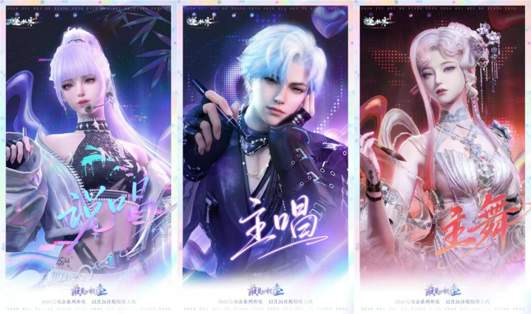 12月,《逆水寒》的国风自走棋赛事「侠棋争霸赛」热火朝天,前文提及的2026跨年国风虚拟演唱会更是破圈级事件,线下大屏以外,更有人民日报全程跟进直播。