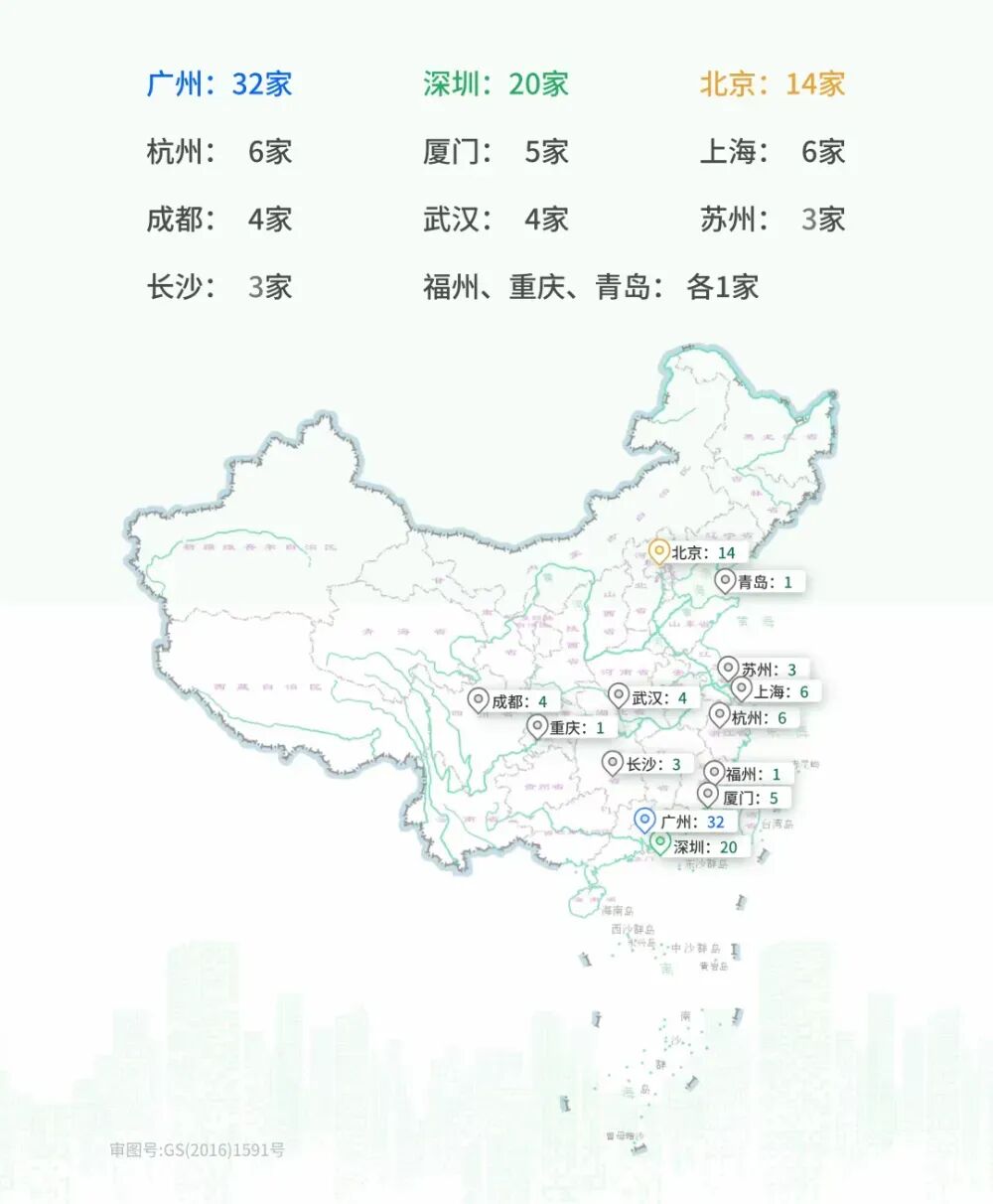 从地域分布来看,广东在小游戏领域优势明显。仅广州、深圳两地便有52家企业跻身百强,几乎占据半壁江山。北京以14家位列第三,随后是福建、浙江和上海,各有6家企业上榜。