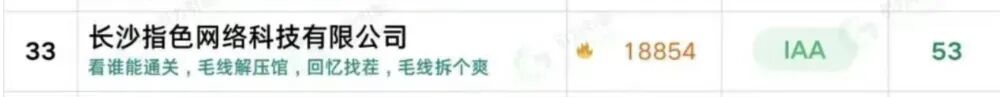 该公司长期专注于IAA类小游戏的研发与发行,旗下《看谁能通关》《毛线解压馆》等轻量解压产品,看似玩法简单,却能凭借高效的流量运营与快速的内容迭代能力,持续占据榜单。这种“以量取胜”的打法,彰显了其在特定赛道的深厚积累。