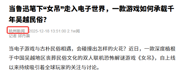 不仅如此,官媒“杭州新闻”也对游戏进行了报道,给予《女吊》高度评价。