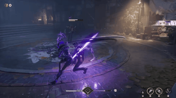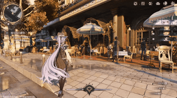 主角踩过积水路面时,脚底产生的涟漪是跟随脚步落点,且伴随溅射粒子。急转弯时,鞋底与石板路摩擦,并没有产生“滑步”现象,惯性处理得当。