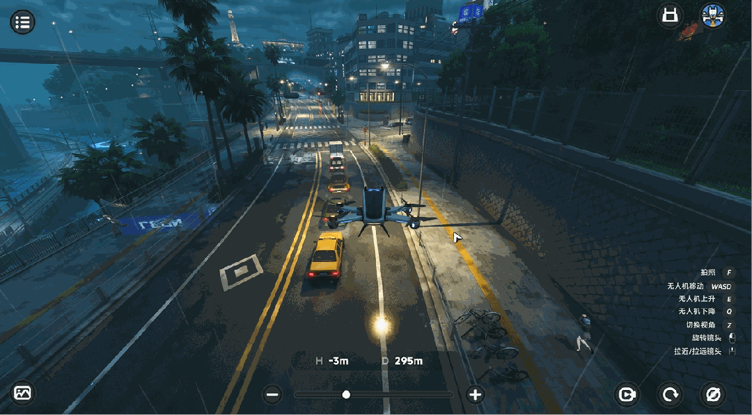 比如这次加入的拍照无人机视角,为玩家欣赏都市景观提供了一种360°无死角的打开方式,绮丽的都市与周遭风光一览无余。
