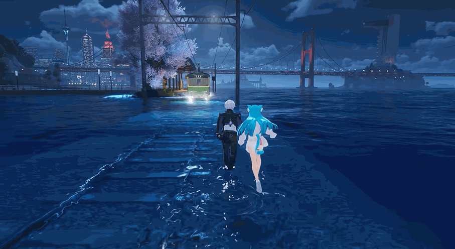 首先,在每一测都变得更好的画面效果中,《异环》的技术力已经得到了充分体现。无缝切入的战斗场景、景观式的翻转城市画面、拟真感十足的飞舞樱花,以及在天气与时间变换下美丽的光影效果,这类秀肌肉的表演在《异环》中比比皆是,其品质在当下游戏中也处于绝对的第一梯队。