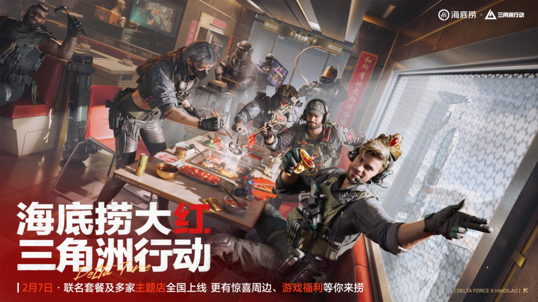 吃的方面,《三角洲行动》则选择与海底捞开展深度合作。从2月7日到3月8日,海底捞将在全国12个地区门店开启大红主题联动,上线联动套餐。