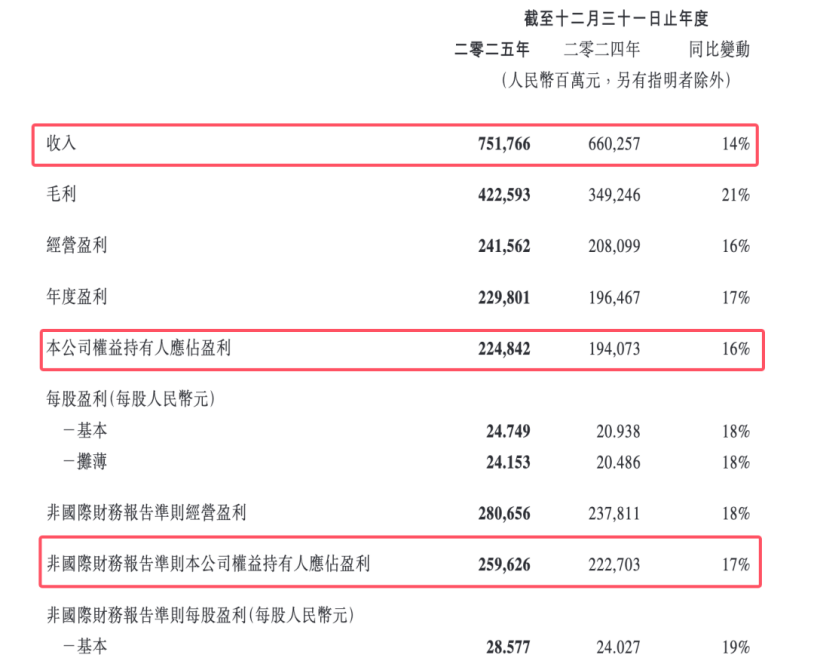 【1】3月18日,腾讯发布了2025年全年业绩报告。报告显示,2025年腾讯收入7518亿元,同比增长14%,非国际财务报告准则下该公司权益持有人应占盈利2596亿元,同比增长17%。