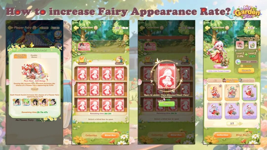 游戏还推出了免广告和一键收取功能的VIP特权,同时加入了花灵系统。玩家需要抽取精灵花并搭配副花才能进行培育。