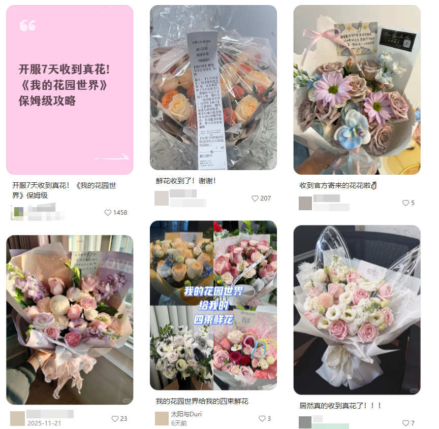 同时,这款游戏也保留了“送真花”的核心机制。此前,这种线上种虚拟花换取线下实体鲜花的创新模式,在国内市场狠狠火了一把。