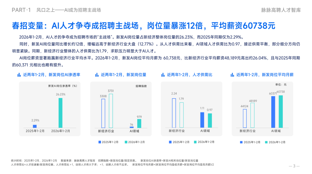 因为大家发现AI能替代的工作越来越多,提升效率的速度也肉眼可见的快。AI的更新发展速度太快了,年后回来,很多公司就像疯了一样,大量释放AI岗位需求,哪怕现在用不上,也要先把人招进来储备着。去年这时候,还没看到这么疯狂的招聘现象。