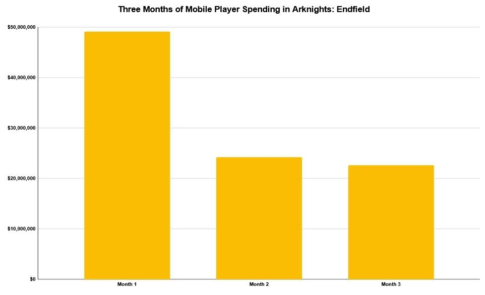 《明日方舟:终末地》于2026年1月22日在全球范围内跨平台同步发布。经过三个月的沉淀,各个区域市场的消费潜力已清晰浮现。