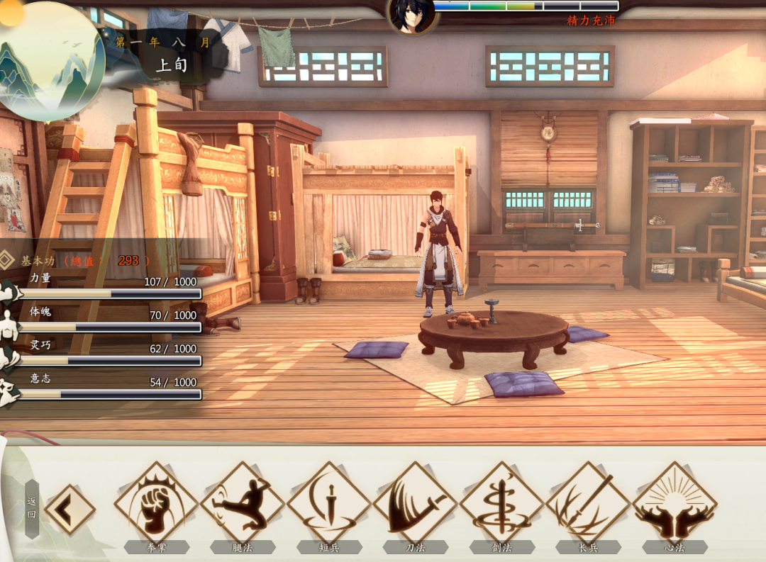 值得注意的是,游戏中除了基本属性之外,还有胆识、爽朗、修养、坚毅等思维属性,当某项属性不足时,影响着是否能够和好友们发展更亲密的关系,以及能接到要求更高的任务等。玩家则可以通过“游艺”的形势提升属性,另外,游戏中每年还将举办2次琴棋书画比赛,当玩家取得前两名时,将获得相应的奖励。